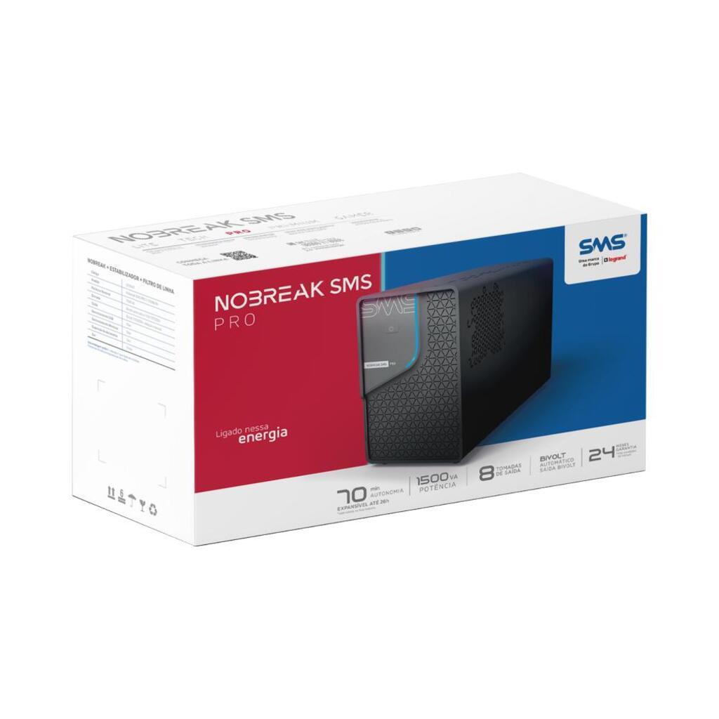 No-Break SMS Pro 1.5 KVA Entrada Bivolt e Saída Bivolt 2 Baterias - 29401 - com Conexão para Bateria Externa-ES-06